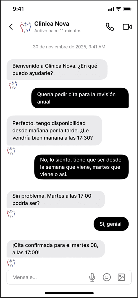 Voz natural, tono profesional y capacidad real para gestionar citas y resolver preguntas básicas. Su centro nunca pierde una llamada importante.