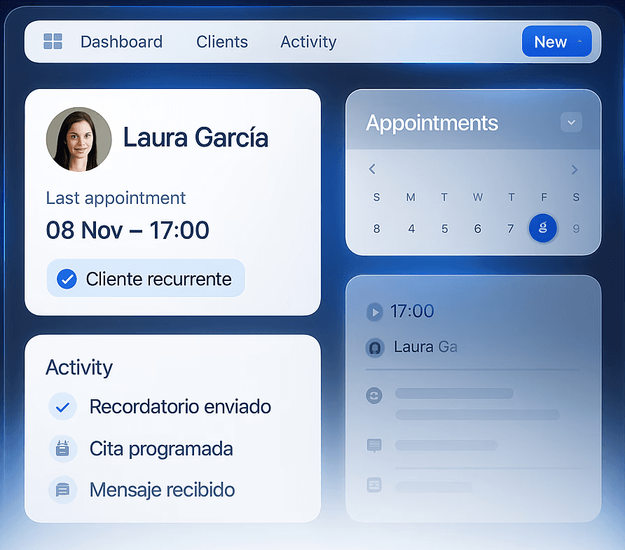 La IA atiende cada mensaje con precisión: propone horarios, confirma citas y recuerda la visita del cliente. Su negocio responde al instante, sin perder control.